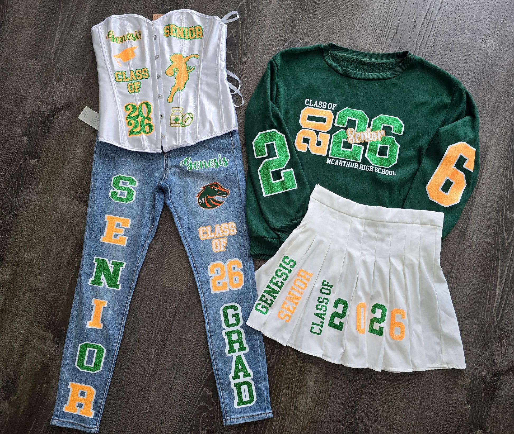 Custom Senior 2026 Sets, Senior Jeans, Senior Sweater, Senior Corset