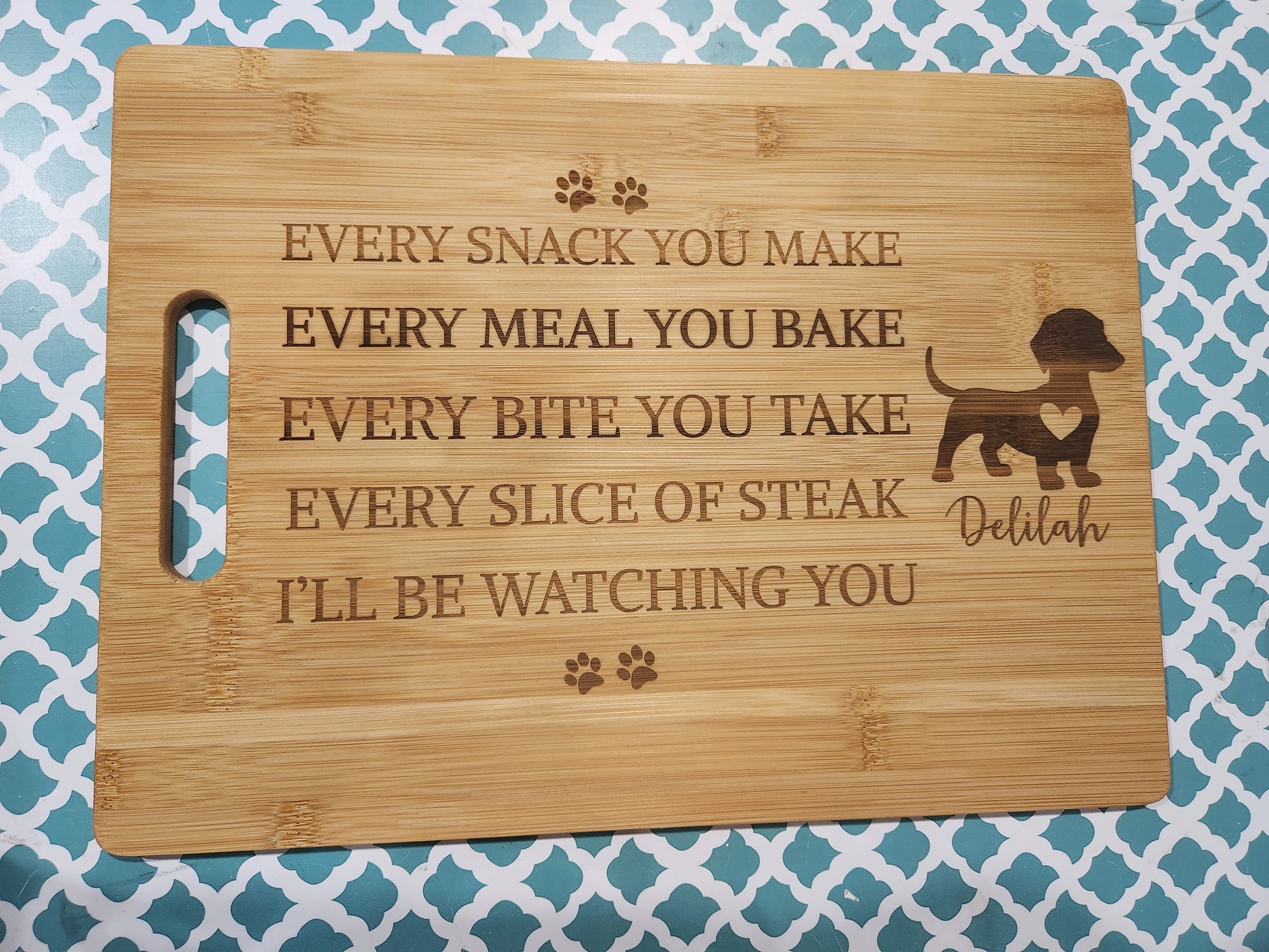 This beautiful 15x11 bamboo cutting board can be custom engraved to add a personal touch to your kitchen. Made from sustainable bamboo, it is not only environmentally friendly but also durable and great for cutting and chopping. Customize your own unique cutting board today.
