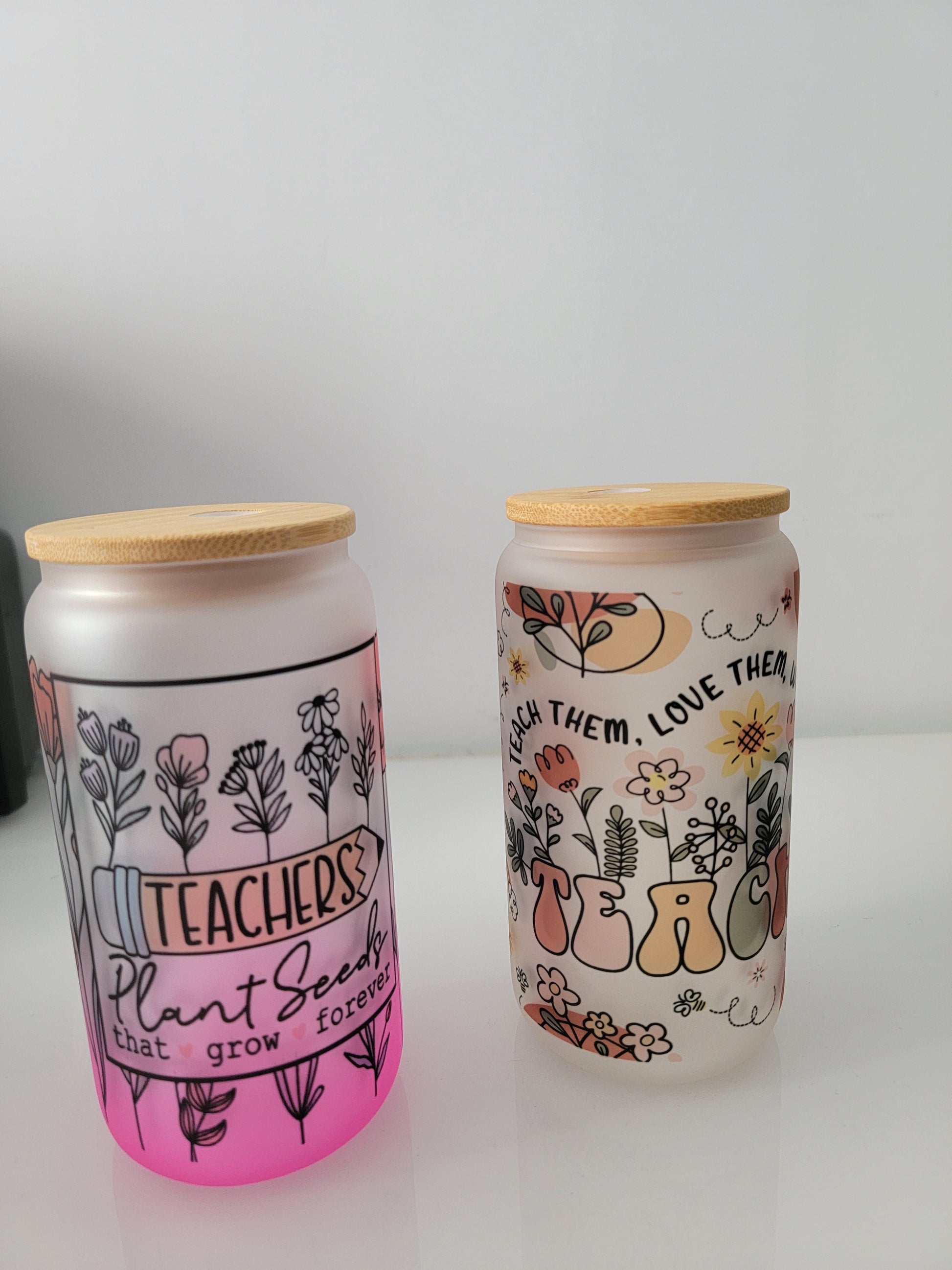 Elevate your drinking experience with our Custom Glass Can Cup. Add a personal touch with any design, making it the perfect gift for teachers, moms or friends. Stylish and unique, this cup is sure to impress. Create your own customized cup today!