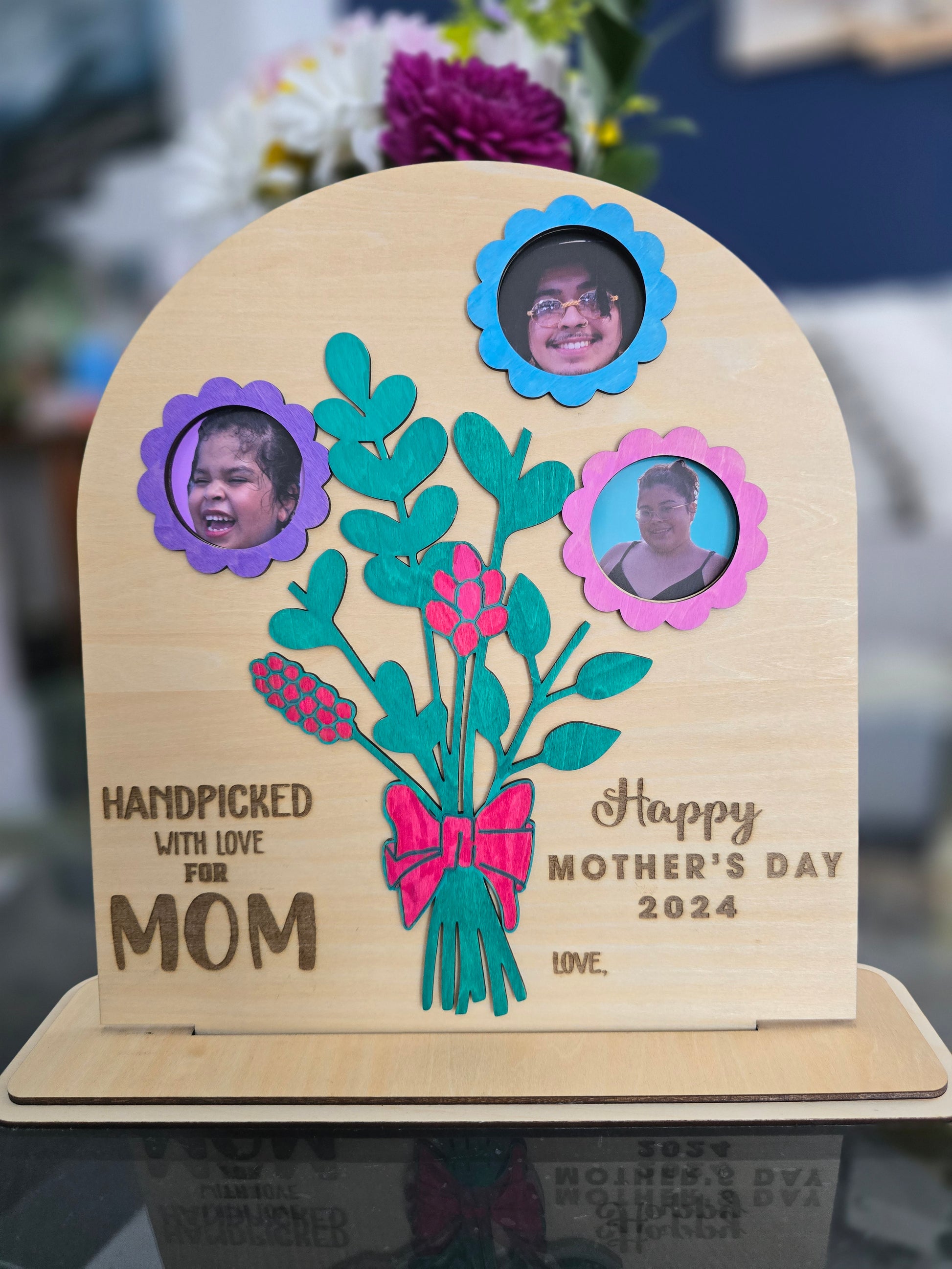 Surprise Mom with a Mother's Day Wood Plaque! Choose from 1-6 flowers and personalize it with any name. Available in painted or unpainted options. Show your love with a unique and heartfelt gift.